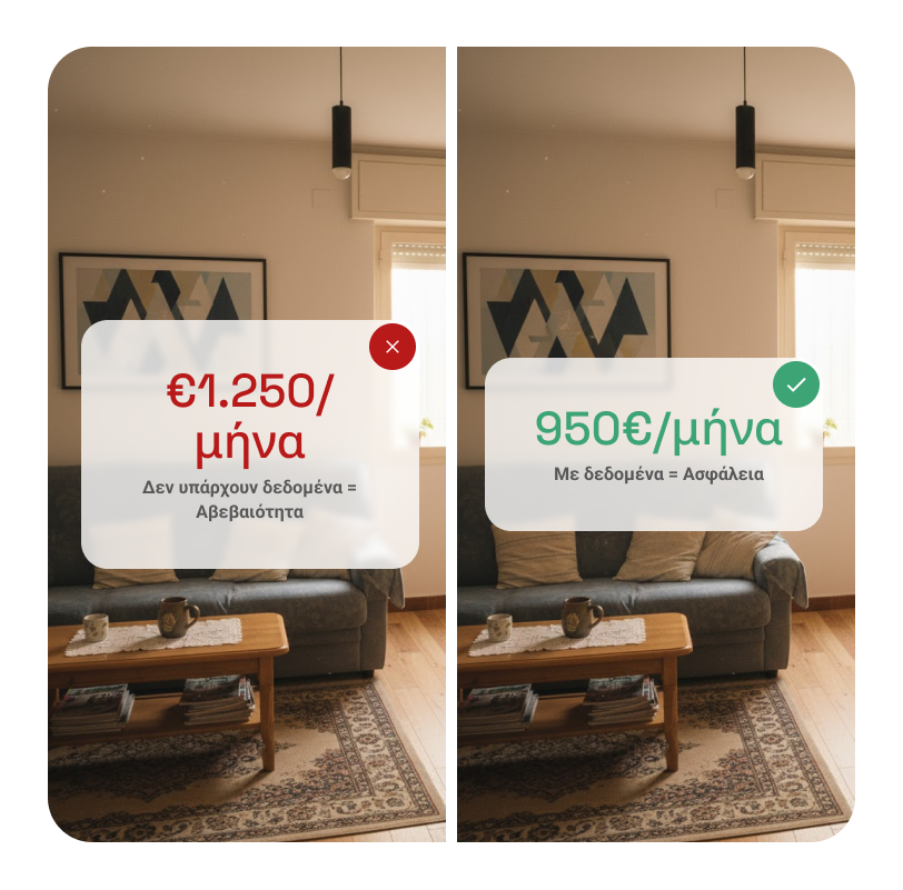 Η αξιολόγηση ενοικίου με πραγματικά δεδομένα σου επιτρέπει να προβλέψεις την αγορά, να μειώσεις την περίοδο κενών και να μεγιστοποιήσεις τα έσοδα από την πρώτη στιγμή, χωρίς περιττό ρίσκο.