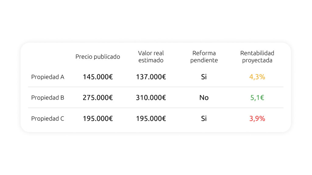 Una propiedad ofertada por 125.000€ fue tasada por Cassandra en 104.300€. El inversor que la compró sin ese dato asumió un sobreprecio de más de 20.000€, reduciendo su rentabilidad un 35%.